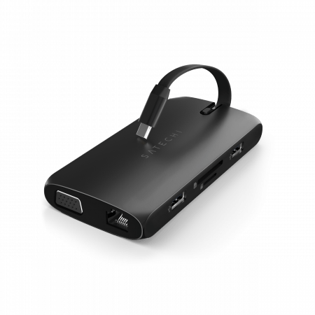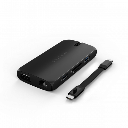 Satechi USB-C On-the-go Multiport adapter (1xHDMI, 1xVGA, 1x USB-C PD, 1xGigabit Ethernet, 2x USB-A, 1xUSB-C, Micro/SD) – Black, ST-UCMBAK