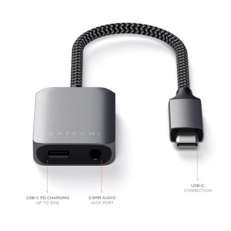 Satechi USB-C to 3.5mm Audio & PD Adapter – Space Grey, ST-UCAPDAM